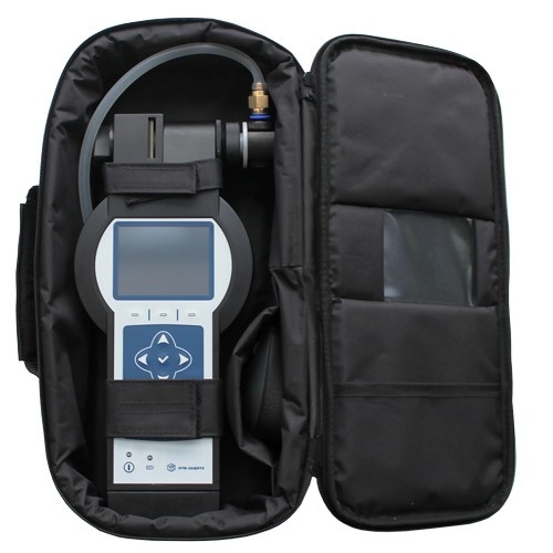 Включенный пылемер размещается внутри сумки, а на вход импактора с помощью съемного нажимного фитинга устанавливается силиконовая трубка, которая выходит за внешнюю поверхность сумки и через которую отбирается проба воздуха. Термоизоляция стенок сумки и количества тепла, выделяемого прибором в процессе работы, поддерживает внутри сумки рабочие условия эксплуатации, при которых температура воздуха внутри сумки выше плюс 1 °С.