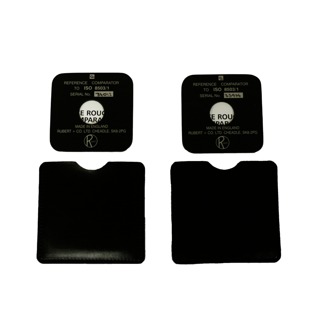 Компаратор шероховатости представляет собой квадратную металлическую пластину с отверстием в центре, разделенную на четыре квадранта с определенной для каждого из них шероховатостью поверхности. Профиль поверхности визуально или тактильно сравнивается поочередно с квадрантами компаратора.