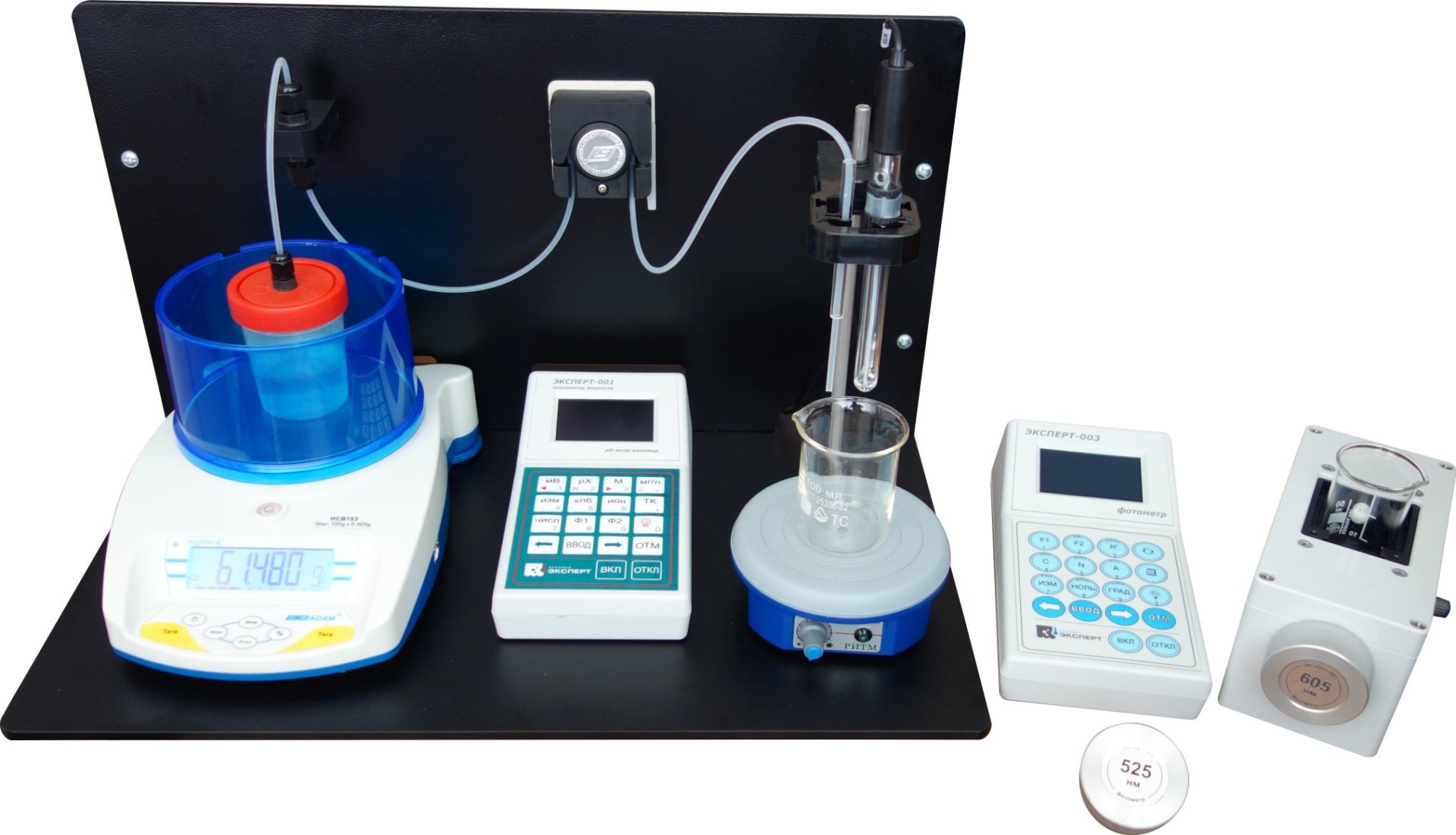 Комплект включает оборудование для автоматического титрования двумя методами: потенциометрическим (измерение ЭДС электродных систем анализатором «Эксперт-001») и фотометрическим (измерение оптической плотности раствора при изменении его окраски фотометром «Эксперт-003»). Представляет собой комплект «Титрион-1-3» (или «Титрион-1-3А»), укомплектованный электродной системамой и сменными источниками излучения.
