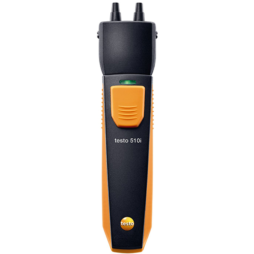 • Дифференциальный манометр testo 510i, управляемый со смартфона, вкл. комплект шлангов (Ø 4 мм и 5 мм) с переходником, батарейки и заводской протокол калибровки (0560 1510)