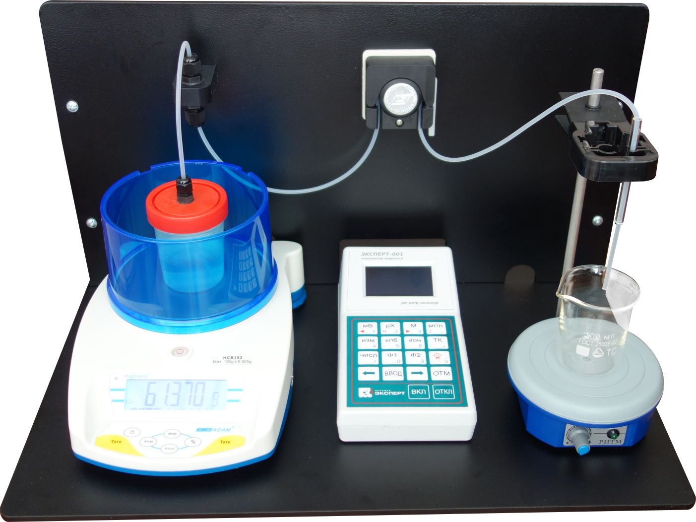 Комплект построен на базе анализатора жидкости «Эксперт-001», при помощи которого в ходе титрования измеряется ЭДС электродной системы.
