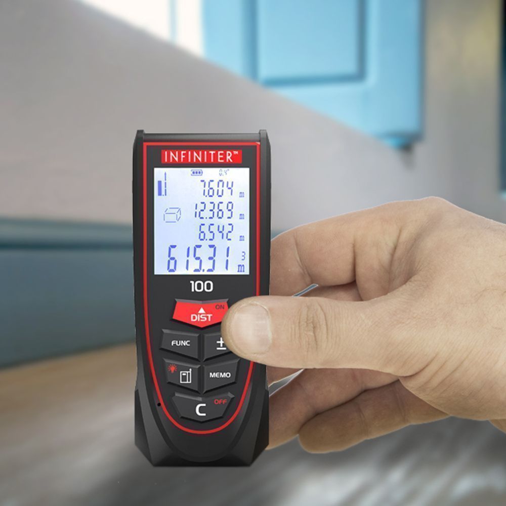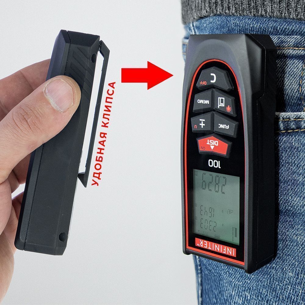 INFINITER 100 — это современный высокоточный измерительный инструмент, который по достоинству оценят профессионалы и домашние умельцы. Главным преимуществом лазерного дальномера является выгодное соотношение цены и качества. Прибор оснащен широким набором функций, удобен в эксплуатации, имеет надежно защищенный корпус.