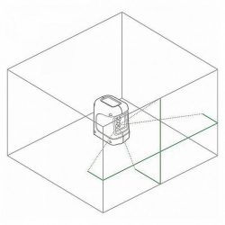 Устройство проецирует 2 плоскости, образующих крест: горизонтальную и вертикальную линии. Угол развертки горизонтального луча составляет 120°, вертикального – 100°.
