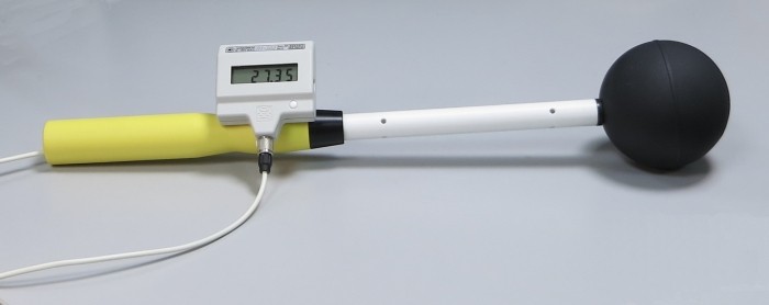 Термометр может быть закреплён внутри корпуса, на котором держится сфера, а может использоваться отдельно. Для измерений температуры воздуха сфера может быть легко снята.