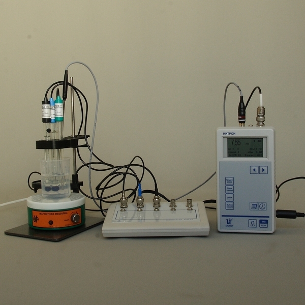 рН — метр — термометр Нитрон — рН предназначен для измерения активности ионов водорода (рН), окислительно-восстановительного потенциала Eh и температуры водных растворов. Принцип работы прибора основан на применении метода прямой потенциометрии. Определяет кислотность молока в градусах тернера.
