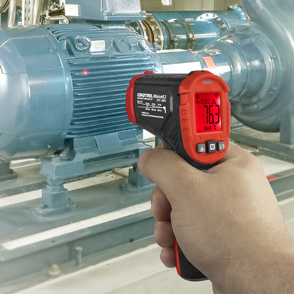 Безопасный мониторинг температуры. Condtrol Maxwell 2 обладает оптическим разрешением 12:1, которого достаточно для измерения температуры на расстоянии, что позволяет безопасно работать с горячими или находящиеся под током объектами. Все измерения проецируются на дисплее. Большие цифры легко считываются с экрана. Для работы в условиях плохой видимости предусмотрена подсветка.