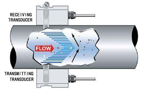 Датчик расходомера излучает сигнал, направленный в поток жидкости. Этот сигнал отражается присутствующими в жидкости твёрдыми частицами или газовыми пузырьками. Частота отраженного сигнала отличается от исходной из-за движения жидкости (эффект Доплера). Контроллер расходомера измеряет сдвиг частоты и определяет значение скорости жидкости.