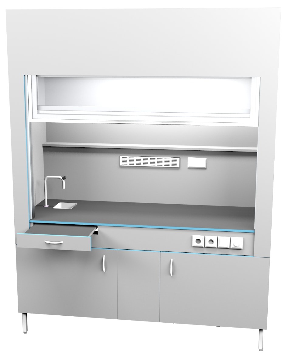 Шкаф вытяжной с сантехникой ШВ НВК 1800 МОН+ (1800×716×2200). Описание: Вытяжные лабораторные шкафы применяются при работе с токсичными и вредными летучими материалами, с чистыми материалами, с растворением или разложением под температурной обработкой, при проведении анализа проб и многих других. Особенности: Полипропиленовая раковина, обладающая высокой химической стойкостью Химически стойкий кран из латуни с полипропиленовым напылением для подключения холодной воды Дополнительная подсветка сбоку с плавной регулировкой Выдвижной столик Вытяжка из нижней тумбы позволяет хранить в ней реактивы Ударопрочный подъемный кран легко поднимается одной рукой Экран в поднятом состоянии не увеличивает высоту шкафа Внутри рабочей камеры полочка для хранения реактивов Две влагозащищенных розетки с крышкой внутри рабочей камеры Специальные доводчики в тумбе позволяют закрывать тумбу бесшумно По заказу столешницы могут быть выполнены из: химстойкого пластика керамогранита (плитка) полипропилена нержавеющей стали монолитной керамики эпоксидного керамзита