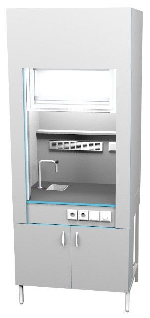 Шкаф вытяжной с сантехникой ШВ НВК 900 ПП+ (900×716×2200) Описание: Вытяжные лабораторные шкафы применяются при работе с токсичными и вредными летучими материалами, с чистыми материалами, с растворением или разложением под температурной обработкой, при проведении анализа проб и многих других. Особенности: Полипропиленовая раковина, обладающая высокой химической стойкостью Химически стойкий кран из латуни с полипропиленовым напылением для подключения холодной воды Дополнительная подсветка сбоку с плавной регулировкой Вытяжка из нижней тумбы позволяет хранить в ней реактивы Ударопрочный подъемный кран легко поднимается одной рукой Экран в поднятом состоянии не увеличивает высоту шкафа Внутри рабочей камеры полочка для хранения реактивов Две влагозащищенных розетки с крышкой внутри рабочей камеры Специальные доводчики в тумбе позволяют закрывать тумбу бесшумно По заказу столешницы могут быть выполнены из: химстойкого пластика керамогранита (плитка) полипропилена нержавеющей стали монолитной керамики эпоксидного керамзита