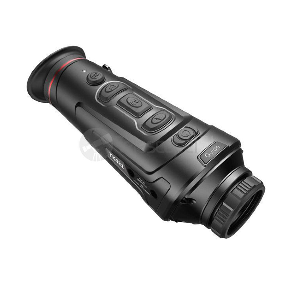 Прочная, эргономичная и водонепроницаемая конструкция. Прибор рассчитан на эксплуатацию в различных погодных / походных условиях: работает на морозе (до -10 °C) и в жару (до +50 °C), не боится пыли, дождя, снега и мокрой травы (IP66) и выдержит падение в сугроб или на мягкий песок с высоты до 1 м. Компактный и лёгкий, тепловизор-монокуляр Guide TK431 спокойно умещается в одной руке, а выпуклые кнопки управления одинаково подходят как для правши, так и для левши и удобны для управления прибором даже в перчатках. Длительные наблюдения можно будет вести со штатива (есть штативное гнездо 1⁄4″), а для комфортной переноски использовать любой из двух ремешков — наплечный или на запястье.