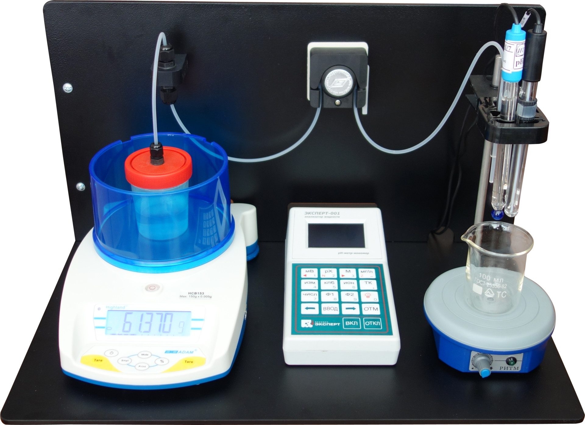 Комплект построен на базе анализатора жидкости «Эксперт-001» с электродными системами для кислотно-основного и окислительно-восстановительного титрования.