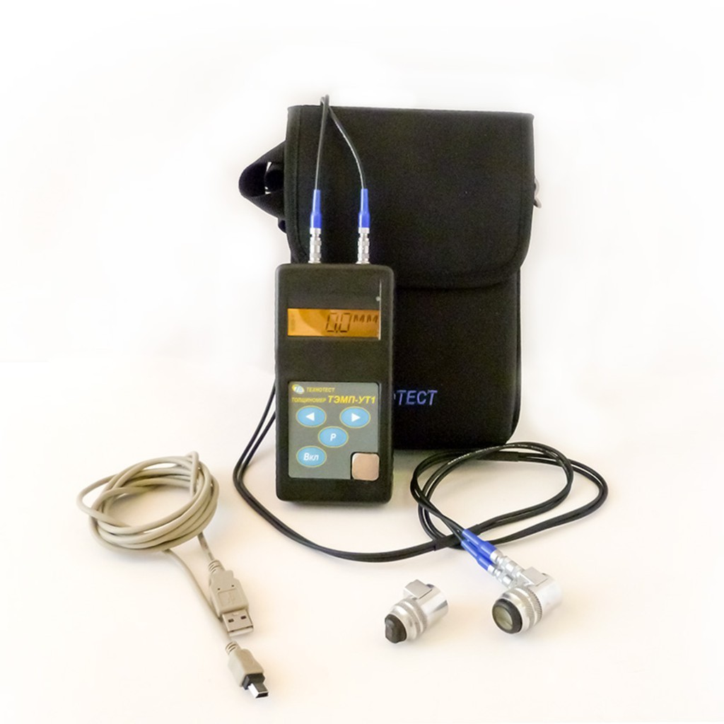 ТЭМП-УТ1 – универсальный ультразвуковой толщиномер, предназначенный для измерения толщины изделий, выполненных из однородных материалов: металлов (включая чугун), сплавов, резины, пластика и других, при одностороннем доступе к ним. ТЭМП-УТ1 также используется для измерения скорости распространения УЗ-колебаний в материале изделия, причем работает практически с любыми раздельно-совмещенными ультразвуковыми преобразователями. ТЭМП-УТ1 применяется на энергетических, машиностроительных, трубопрокатных, судостроительных, судоремонтных и других предприятиях.