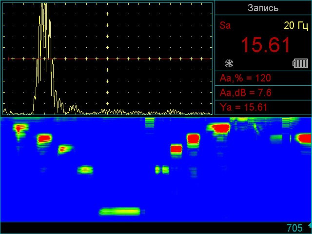 Полноэкранный режим работы УЗ дефектоскопа УСД-50 —  640х480 точек