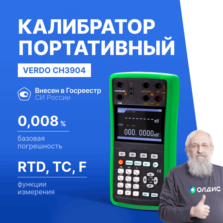 Калибраторы сигналов VERDO CH3904 предназначены для измерения и воспроизведения постоянного тока и напряжения, сопротивления и частоты. Приборы имеют низкую погрешность в 0,008%.