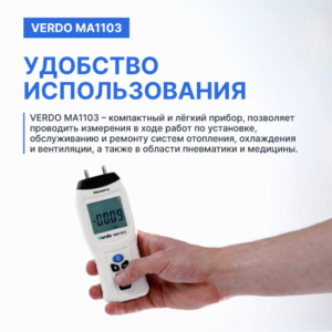 Устройство способно работать с различными единицами измерения давления, включая Па, мбар, кПа, дюймы водяного столба и другие. Высокая точность измерений делает Verdo МА1102 универсальным инструментом, который находит применение в различных областях, где требуется высокая точность, таких как системы отопления, вентиляции, кондиционирования воздуха, а также в инженерных и промышленных системах.