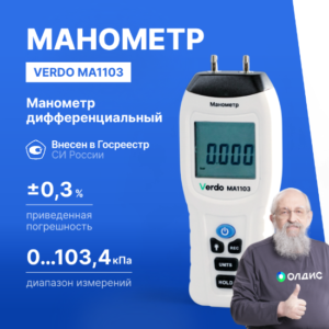 Verdo МА1102 представляет собой компактный и лёгкий дифференциальный манометр, предназначенный для точного измерения разницы давлений между двумя точками в воздушных и газовых системах.