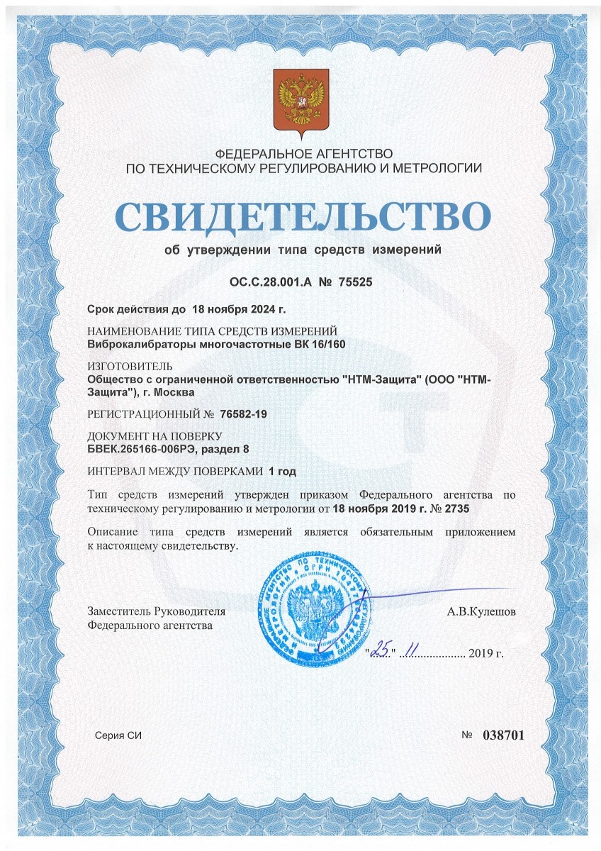 Выпуск ВК 16/160 вызван необходимостью создания устройства, полностью соответствующего требованиям стандарта ГОСТ ИСО 8041-2006 «Вибрация. Воздействие вибрации на человека. Средства измерений.