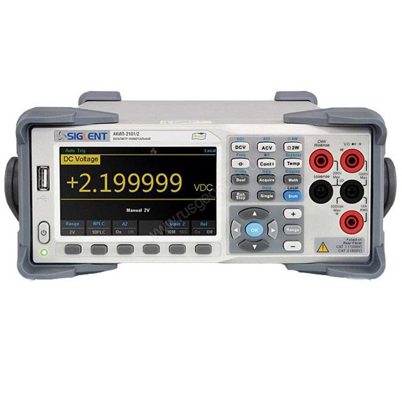 Вольтметр АКИП-2101/2 относится к категории стационарных лабораторных приборов. С его помощью можно выполнять измерения с высокой точностью и скоростью. Он измеряет напряжение и силу тока в электрических приборах, позволяет определить сопротивление и частоту, а также температуру при подключении к нему термопар соответствующего типа.
