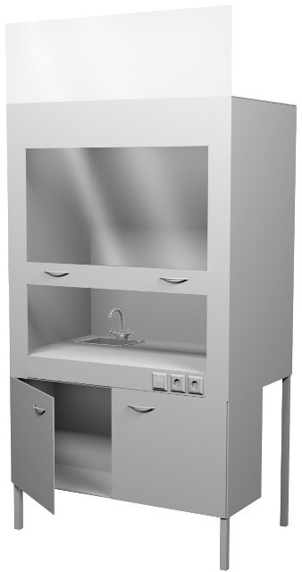 Вытяжной шкаф НВ-1200 ШВ-МО  Шкаф вытяжной для мытья посуды. Камера лабораторного вытяжного шкафа изнутри имеет встроенную в столешницу полипропиленовую раковину 400*400*300 мм (слева). Вытяжные лабораторные шкафы применяется при работе с токсичными и вредными летучими материалами, с чистыми материалами, с растворением или разложением под температурной обработкой, при проведении анализа проб и многих других.Столешница вытяжного лабораторного шкафа в стандартной комплектации выполнена из керамогранита.Керамогранит (плитка) обладает рядом преимуществ: устойчив к продолжительному воздействию кислот, щелочей и органических растворителей, обладает повышенной механической стойкостью, способен выдерживать высокие температуры, ограничено стоек к плавиковой кислоте. Возможные варианты различного исполнения столешниц, стойких к агрессивным материалам, делают вытяжной шкаф незаменимым для любой лаборатории. В комплектацию вытяжного шкафа входит: рабочая камера: подъемная рама с противовесами, столешница керамогранит заземленная электророзетка нижняя тумба с полкой полипропиленовая раковина смеситель обычная электророзетка цельносварной металлический каркас в порошковой окраске регулируемые по высоте опоры Дополнительная комплектация (по запросу): Столешница из нержавеющей стали, эпоксидного керамзита типа Durcon Взрывозащищенное исполнение Большая раковина со смесителем Кран для подвода природного газа, воздуха Вентиляционный блок, гофротруба Вытяжка из тумбы.